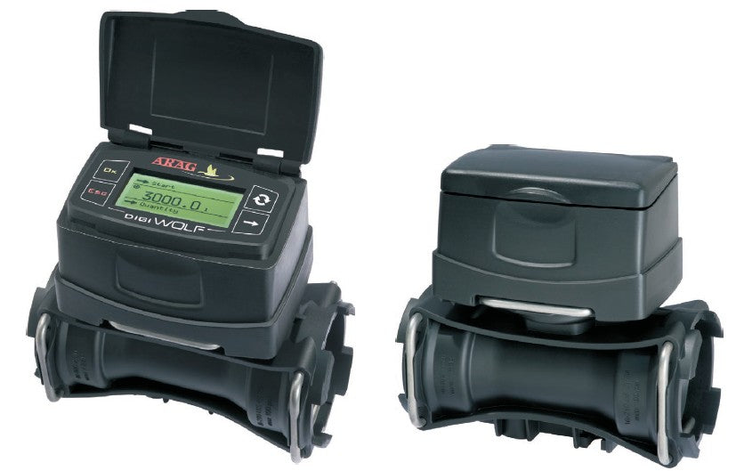 Arag DigiWolf 462 series digital flow meter includes 2 x AA batteries and BSP(M) fittings kit - all sizes