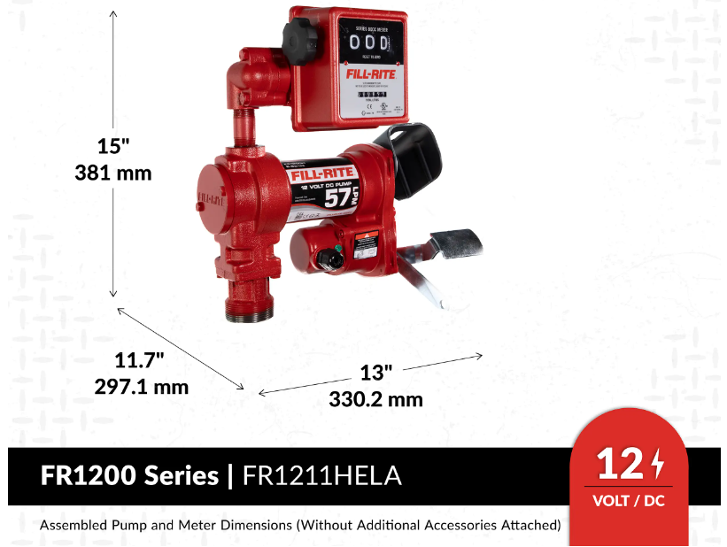 Fill Rite FR1210HE 12v petrol and diesel fuel pump with 3.6 m hose and manual nozzle (IECEx certified)