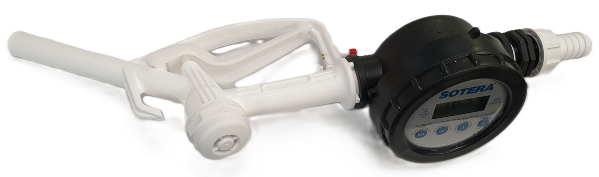 Ketta 200 dispensing nozzle and Sotera 825 digital flow meter 25 mm hose tail 76 lpm 8.6 bar (125 psi)