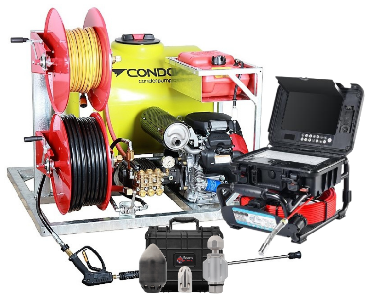 Ketta DrainTracer Van Mount VM series compact drain cleaner with Rain-Proof camera pack and 3 x piece drain nozzle kit - all options