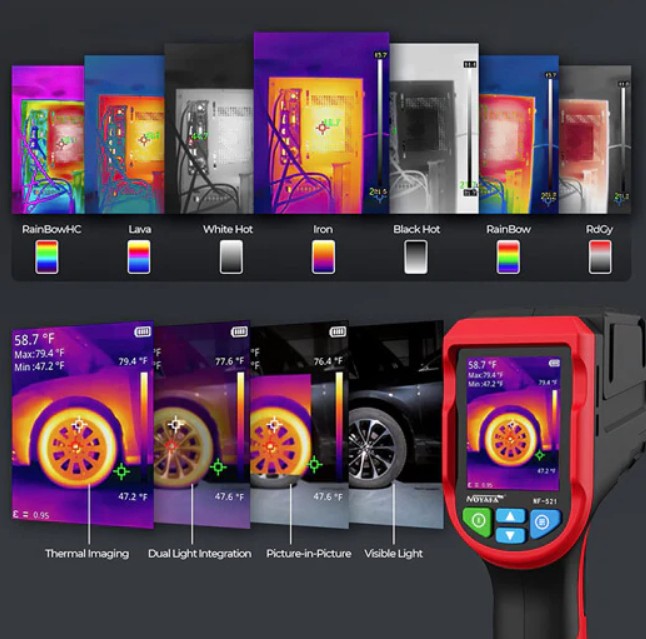 Adjustable colour palettes: choose from Iron Red, Rainbow, or B&W for optimized visualization